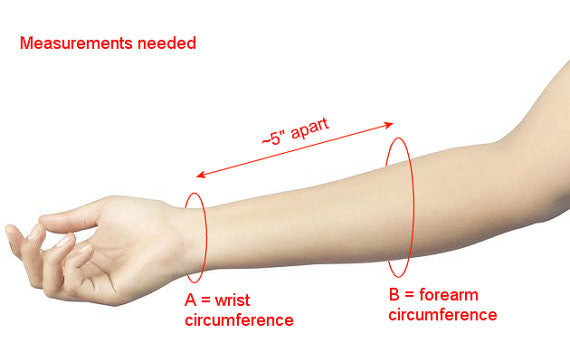 - Straps are cut to custom sizes, so please be sure to include the measurements around the wrist and approximately 6 inches up from the wrist