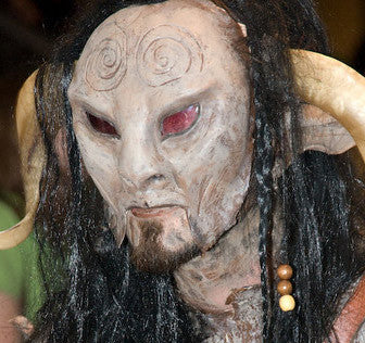 This Faun / Satyr mask is cast in latex to proviude a durable and realistic prothetic. It is attached with spirit gum along the top sides and bottom.
