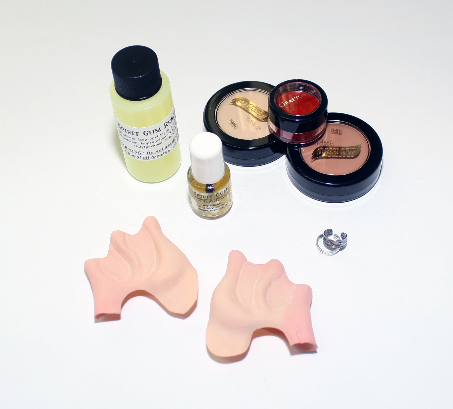 These kits are pre-painted a base flesh tone, and come with the matching RMG stack so that you can easily touch up the ears to better match your skin tone. Please note: Do NOT use spirit gum remover on any latex prosthetics, just for use on your skin. Mineral oil based products (including cosmetic make-ups) can break down latex!